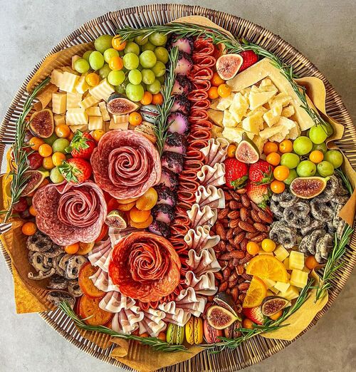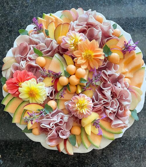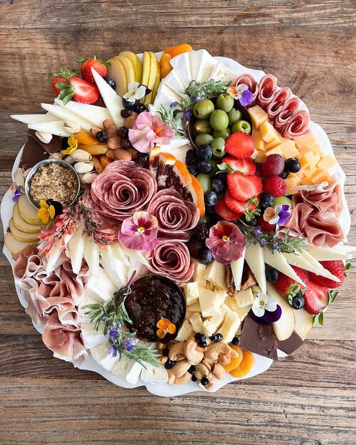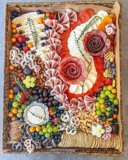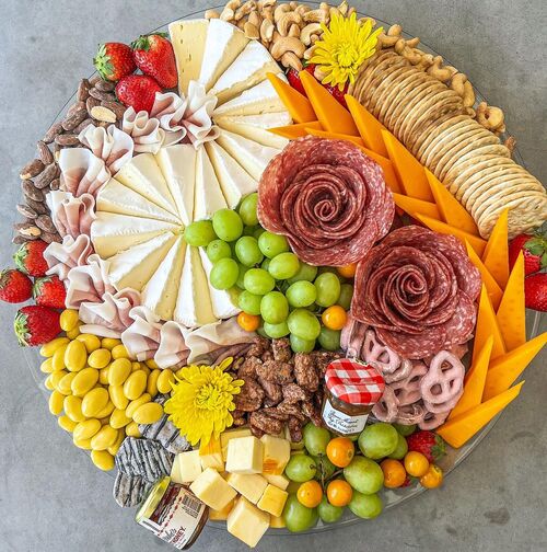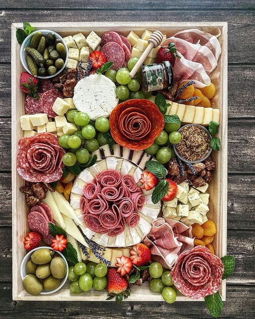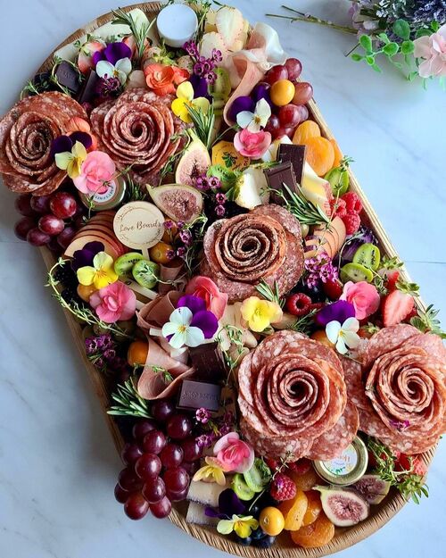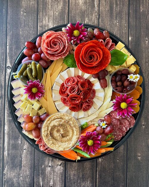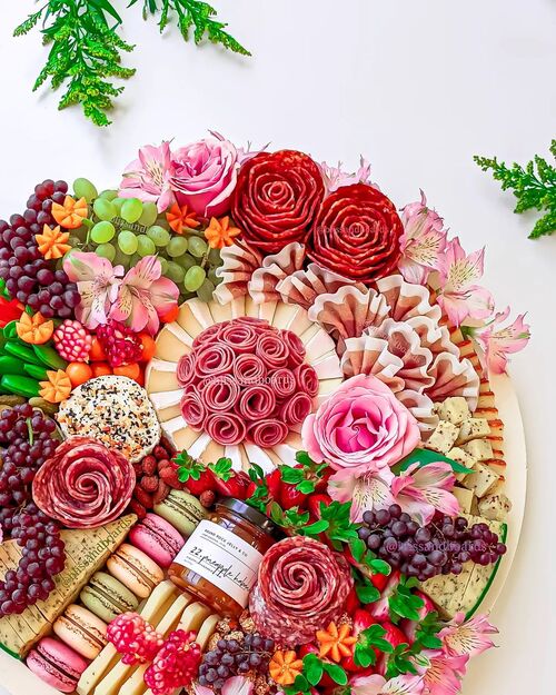 20. Floral charcuterie board with meat roses