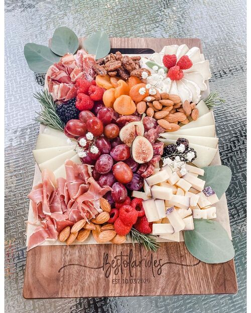 For a unique customization at your wedding, this charcuterie board is a thoughtful option.