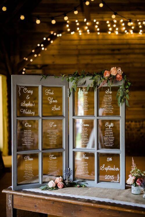 Acquire an antique window and use a white marker to inscribe guest names upon its panes.