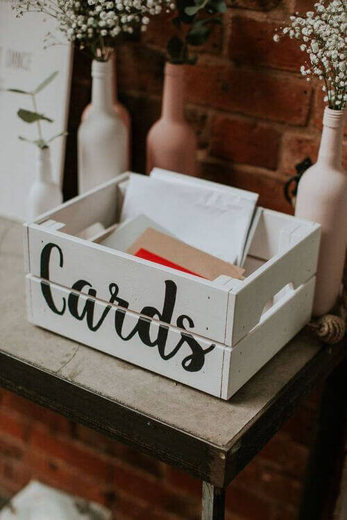 Purchase an unpainted wooden crate to receive “well wishes” cards from your guests.